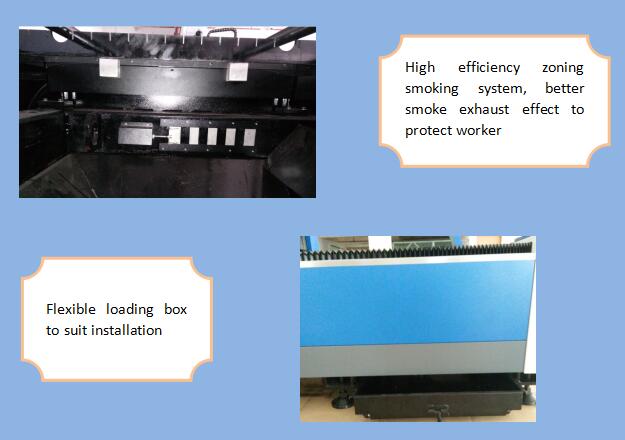 3. Sistema de fumar de zonificación de alta eficiencia en ambos lados del cuerpo de la máquina, fuerte segmentación de polvo y recolección de humo, reducirá el daño al trabajador.