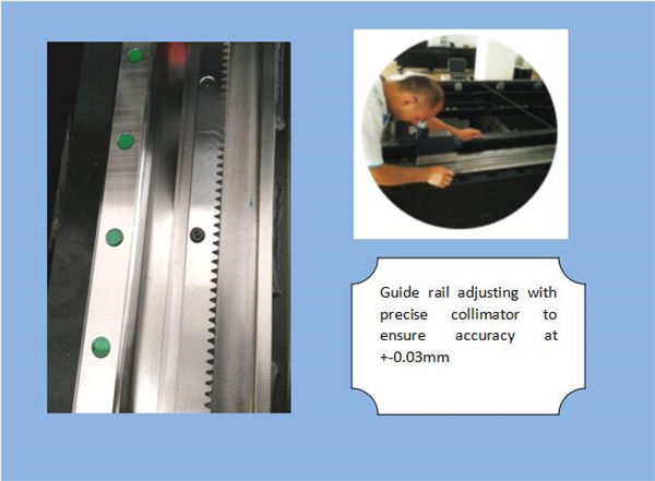 | Nombre:AC servo motor y controlador El servomotor importado (eje Y impulsado por dos servomotores) junto con el sofisticado reductor planetario asegura un manejo estable, preciso y confiable. | |