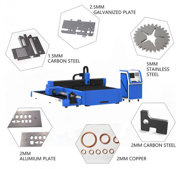 * Especialmente utilizado para cortar acero al carbono de 0.5-6 mm, acero inoxidable de 0.5-5 mm, acero galvanizado, chapa de acero electrolítica recubierta de zinc, acero al silicio y otros tipos de láminas metálicas finas. 1000W puede cortar aluminio de 3 mm y cobre de 2 mm.