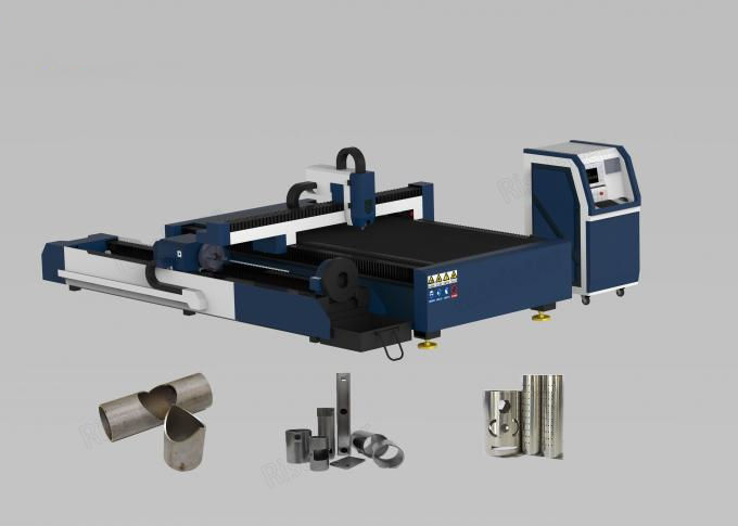 The whole fiber tube and plate laser cutting machine consist of machine tool, motion parts, electrical equipment control parts, and other assist parts. Via control system to operation three axis motion parts, so it can drive to fiber laser cutting head achieve a stable, accurate, and high speed moving; X and Y axis adopt by imported with original packaging high quality and precision HIWIN linear guide rail, working table adopt by square pipe to welding the overall machine, stress relief annealing treat, the max load-bearing of mesa could get 500 KG, it also has universal ball bearing, machine external set up peripheral clamping device, use full enclosed dust proof device, photoelectric sensor, and other precise positioning parts to ensure accuracy of the transmission.